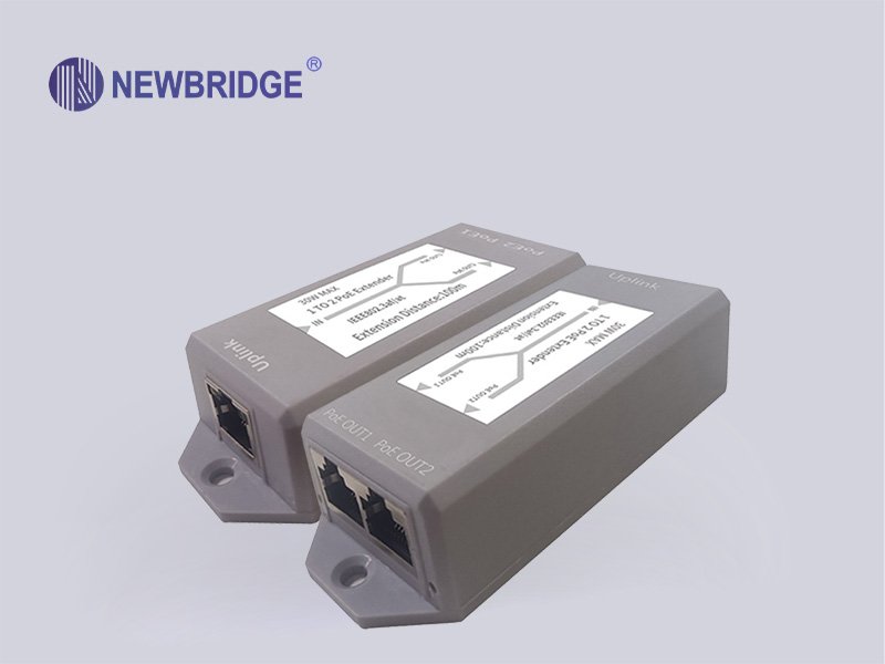 Newbridge® ND-PE102 1 PD power receiving interface POE IN + 2 standard POE output interfaces POE OUT1 or POE OUT2, national standard intelligent POE cascade treasure, also known as POE repeater, POE extender and other names; this is a high-performance, low-power The 10/100M trunk line extension transmission POE switch with high power consumption is the best choice for security monitoring, POE power supply transmission networking, and small-scale intelligent construction. Provides 2*10/100Mbps ports and 1*10M/100Mbps POE PD power receiving interface, which can be used to connect upstream devices with higher bandwidth. Support standard POE input, port supports 52V output, 30W power. Store and forward technology is used to ensure that bandwidth is effectively allocated to each port. The full line-speed 100M rate is connected to the workgroup or server, no power supply design, easy to plug and play, this flexible non-blocking structure, users can use without the limitation of bandwidth and media network. The switching port supports half-duplex and full-duplex working modes, each switching port supports adaptive function, and the port adopts the store-and-forward mode. networking solutions.