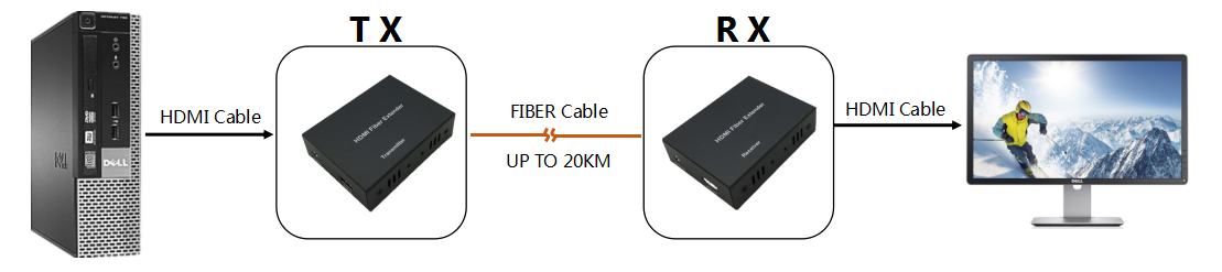Transmits HDMI video signals up to 20km over a pair fiber optic cable;