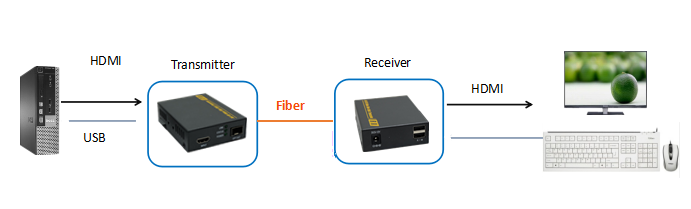 HDMI 4K USB KVM Extender Via Fiber 1*HDMI+1*10G Single FiberVideo and audioSFP slot (choose 2km-10km modulesurport 3Dup to 3840*2160@30HzHDMI1.4 DC5V2A