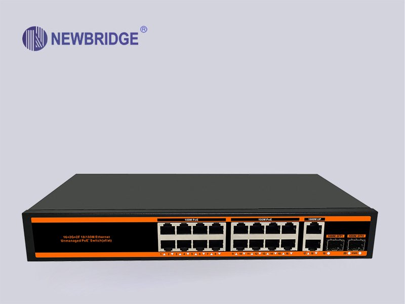 20 ports switch with 16*10/100M bit PoE ports,2*10/100/1000M Uplink Port and 2*1000Mbps SFP Slot ,PoE Standard: IEEE 802.3af/at,PoE data & power transmission distance 100meters,support 8MP camera .300W power supply
