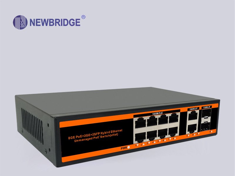 Newbridge®ND-HPG0822 series PoE switch is designed by NEWBRIDGE for meeting the demand of PoE power supply. It adopts the latest high-speed Ethernet switching chip and ultra-high backplane bandwidth design, with extremely fast data processing capability to improve smooth data transmission performance. It has 8 PoE-powered RJ45 ports, 2 RJ45 uplink ports and 2 independent SFP expansion slot. All of eight RJ45 ports support IEEE 802.3af/at standard , with a maximum power supply of 30W for a single port and 150W for the whole machine, which can automatically detect and identify the powered devices that comply with IEEE 802.3af/at standard and supply power for the priority mechanism through the network cable.